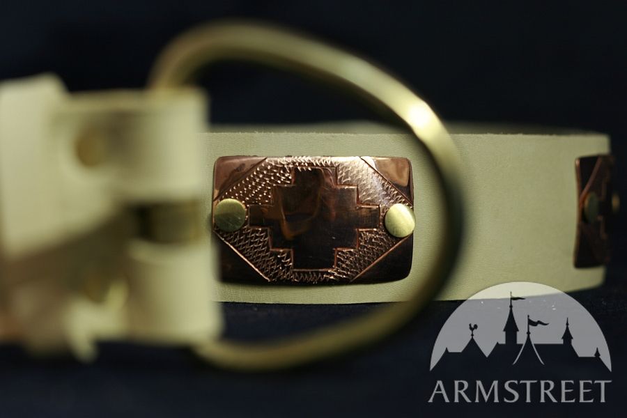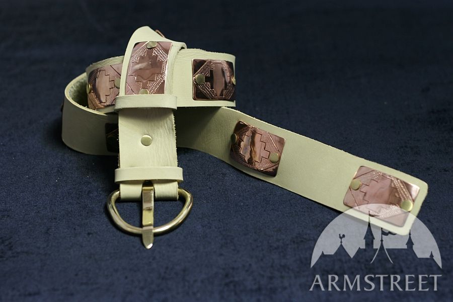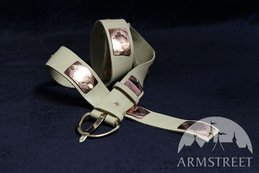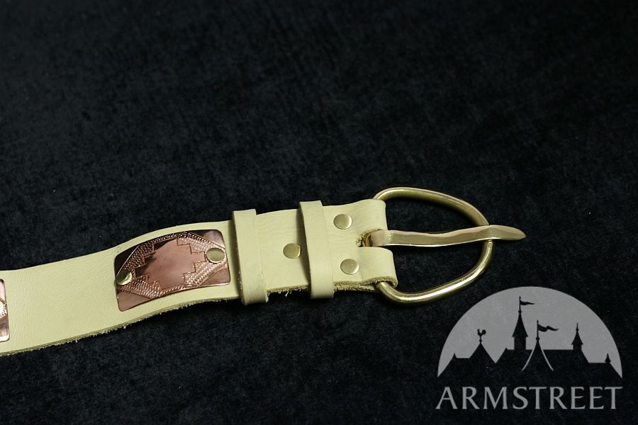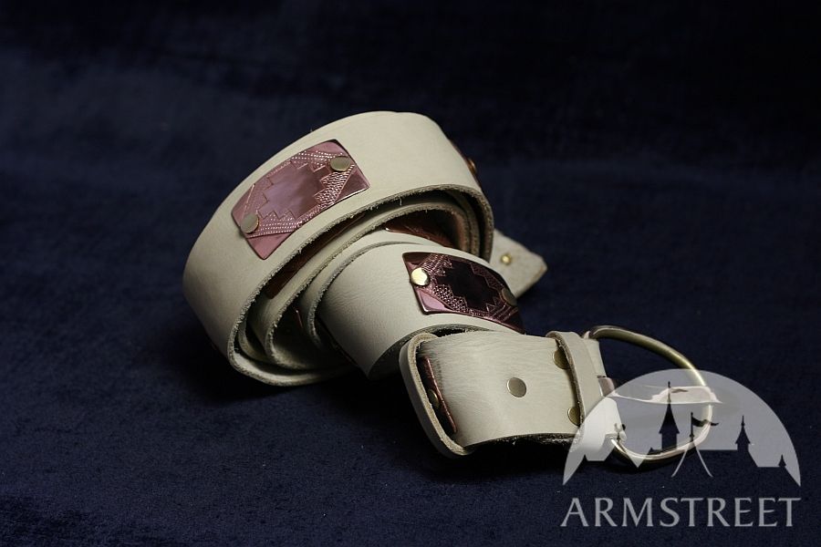 This is handmade leather belt with original handmade metal-coining copper accents.