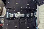 A truly stunning embellished belt that blends in well with any type of clothing, except for a pair of ordinary jeans. Thanks to the metal parts it is a very sturdy belt and can only be worn one way, medieval style. The belt is so much more outstanding than any normal belt I own. I highly recommend this belt.