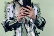 A custom version of the breastplate with gorget in mirror-polished stainless steel