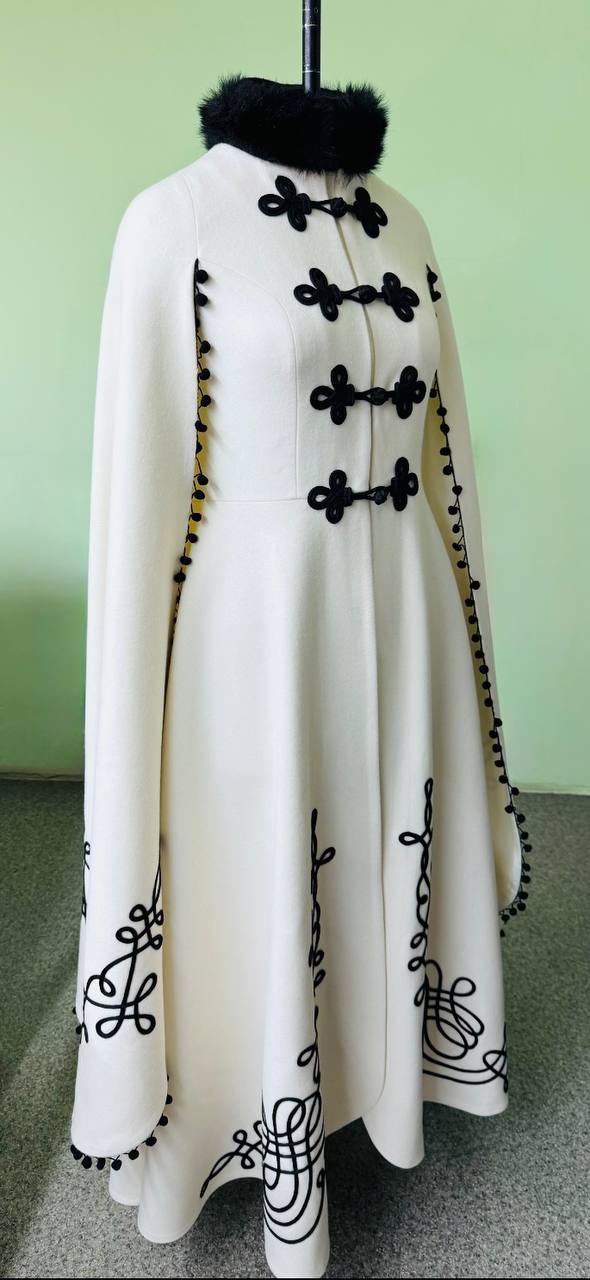 Take a look at this gorgeous coat in white! Contact us to get more info about custom options.