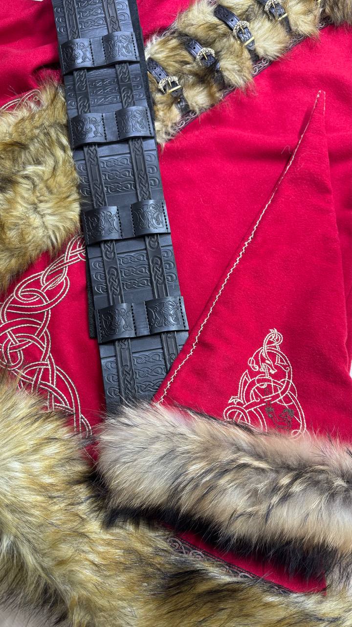 This festive viking kaftan is the perfect piece for anyone looking to suit a viking aesthetic with a bit of fantastical flair.